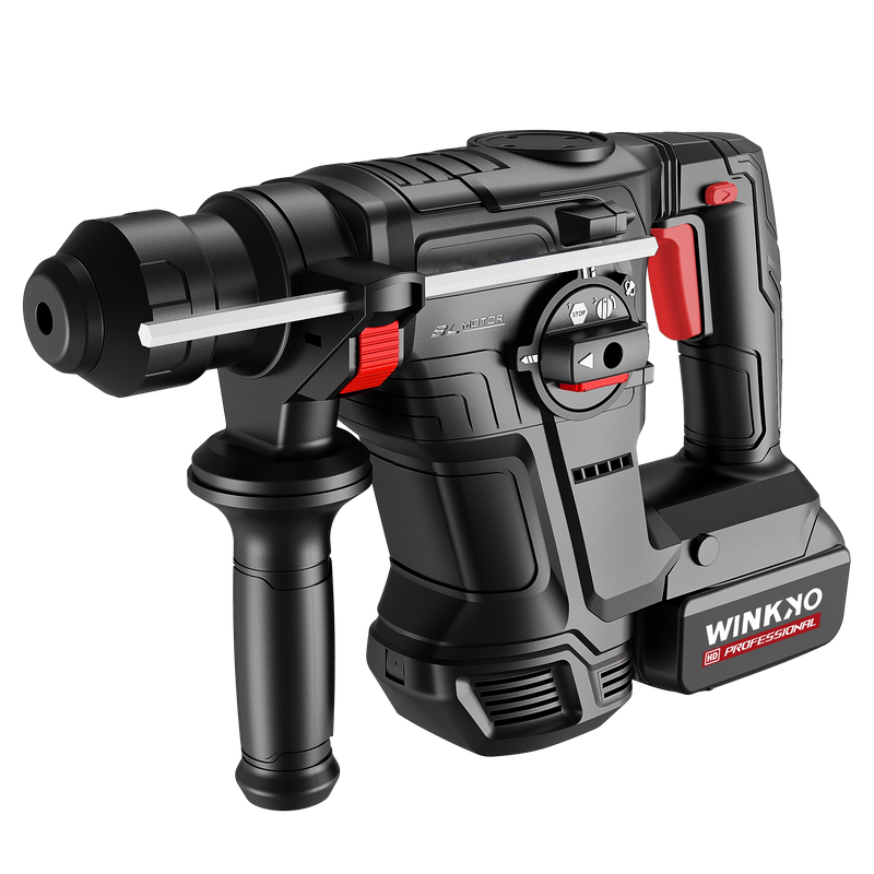 A vezeték nélküli kefe nélküli forgókalapács egy olyan elektromos szerszám, amely integrálja a fejlett kefe nélküli motortechnológiát és a vezeték nélküli akkumulátortechnológiát. Egyesíti a forgatási és kalapácsolási funkciókat, és hatékonyan tud lyukakat fúrni különféle kemény anyagokon, mint például beton, kő és tégla. A vezeték nélküli kialakítás a szerszámokat hordozhatóbbá teszi, és alkalmassá teszi a különféle építési környezetekhez és forgatókönyvekhez.